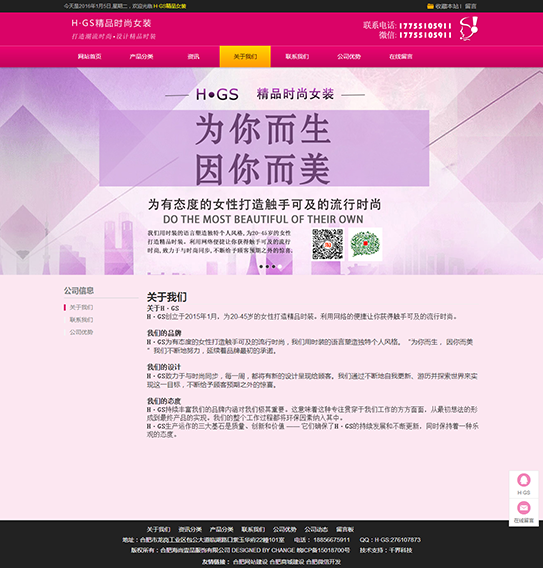 H·GS創(chuàng )立于2015年1月,為20-45歲的女性打造精品時(shí)裝。利用網(wǎng)絡(luò )的便捷讓你獲得觸手可及的流行時(shí)尚。