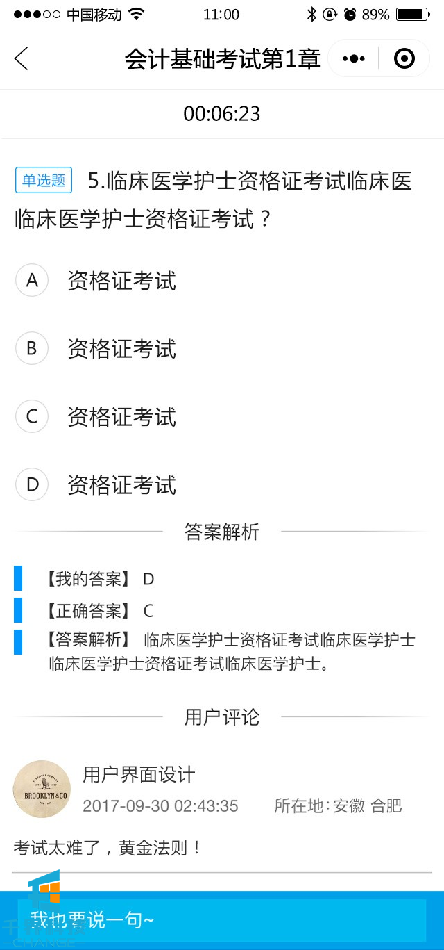 包含模擬考試,提交答題卡,然后出考試成績(jì),試題解析,章節練習,錯題集錦,題型選擇